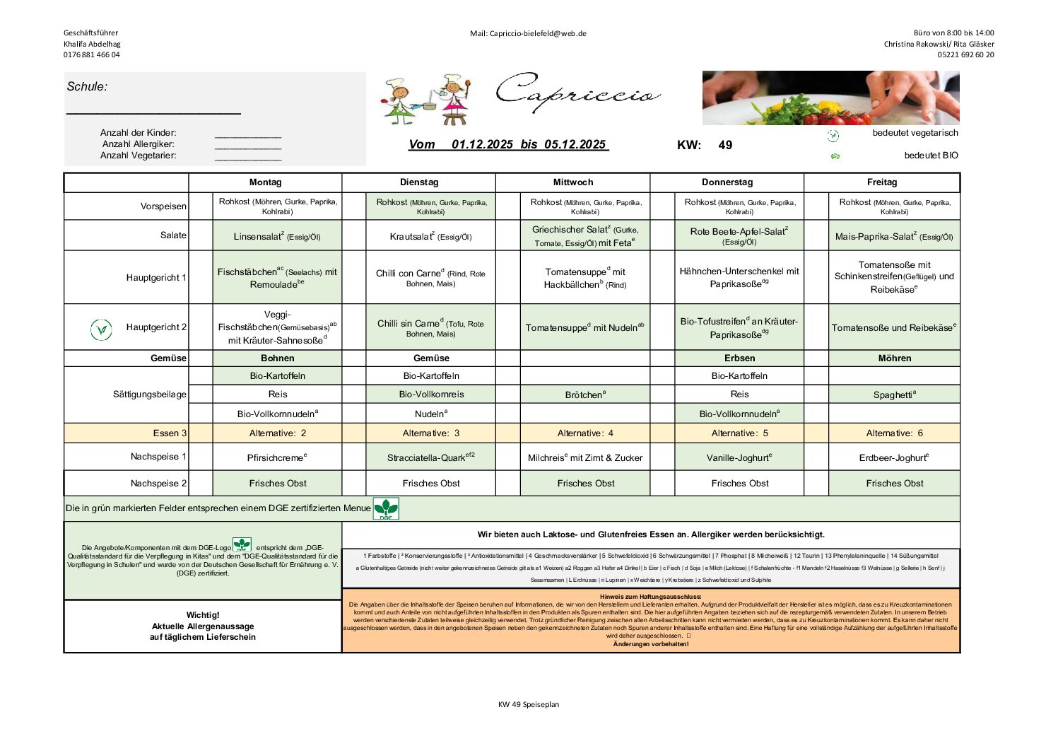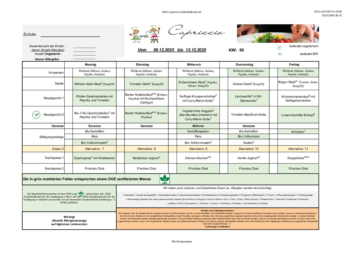 Hier finden Sie eine Aufzählung all unserer Inhaltsstoffe und Zutaten. Wir bieten auch laktose - und glutenfreies Essen an. Allergiker werden berücksichtigt. Sollten Sie sonst besondere Wünsche haben, kontaktieren Sie uns bitte persönlich über das Telefon oder unser Kontaktformular.